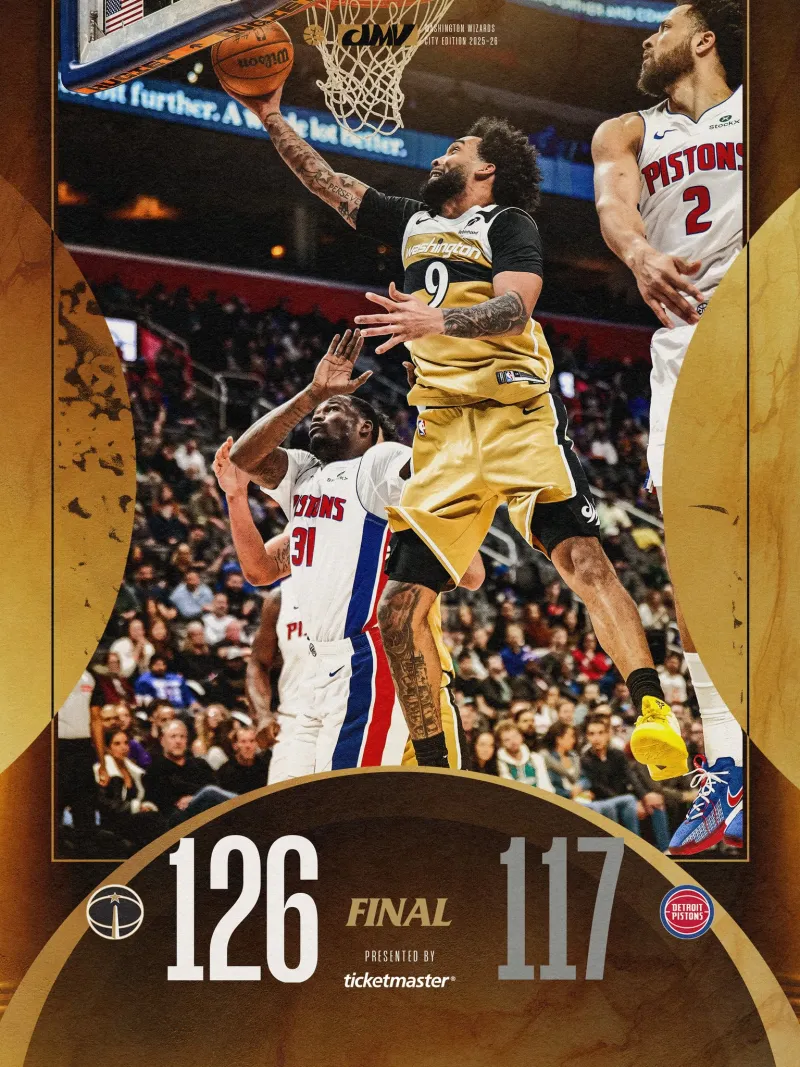 虎扑02月06日讯 奇才以126-117击败活塞。