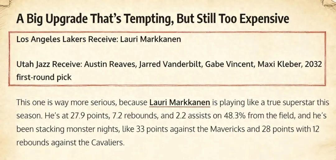 对此,你怎么看呢?你认为湖人应该推动这笔交易,引入马尔卡宁呢?