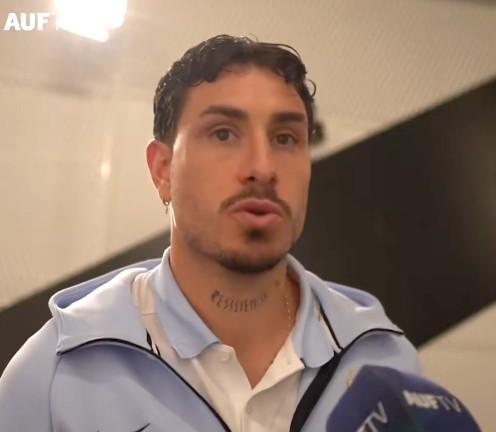 高空球一直都是乌拉圭很有代表性的特点,今天也能看出你们在空中对抗上的强度。有两次机会已经非常接近了,你自己也有一次,虽然没那么接近,但能看出来球队也一直在朝这个方向努力。